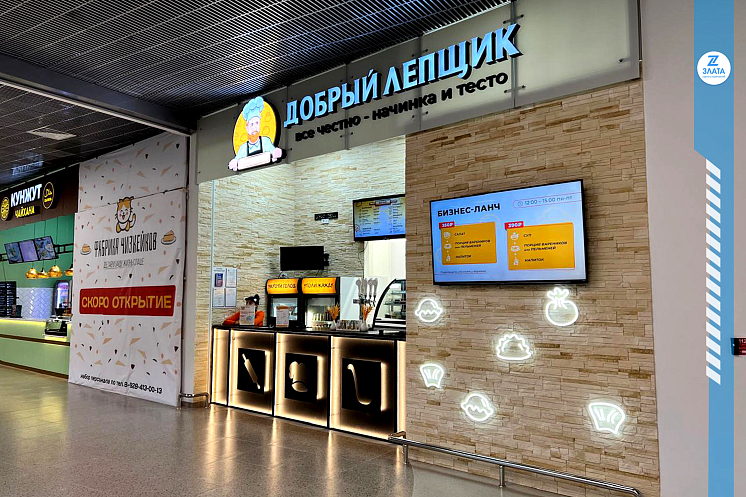 Трудности заключались в совмещении элементов фасада с фризом торгового центра, подключении систем вентиляции к системам ТЦ, переносе вводного щита ТЦ по помещению.