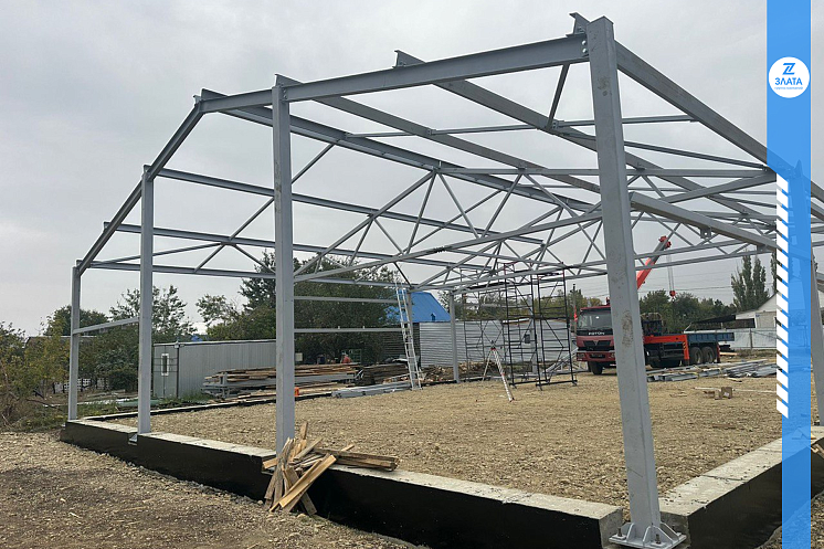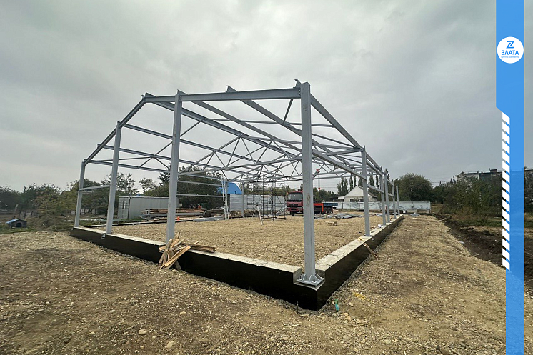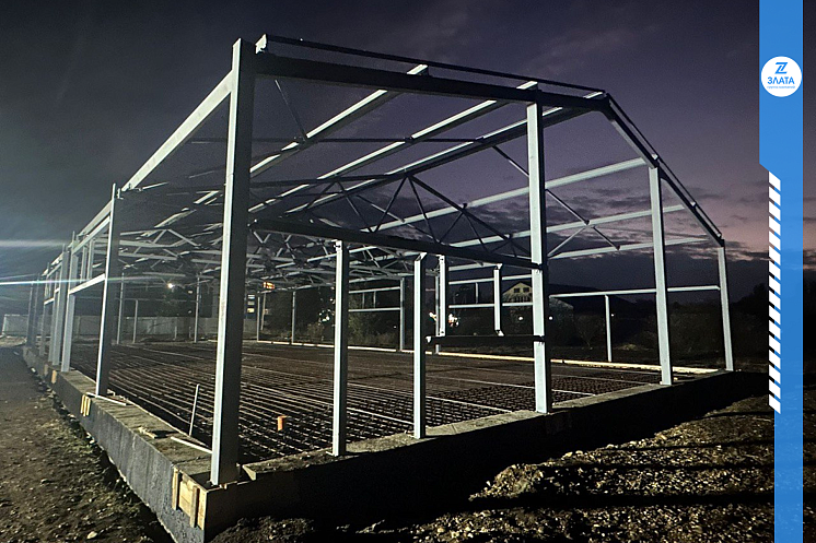• Возведены несущие металлические конструкции и балки и приступили к установке стеновых сэндвич-панелей.