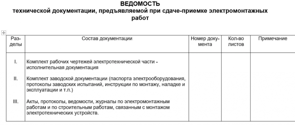 - Акт сдачи-приемки электромонтажных работ